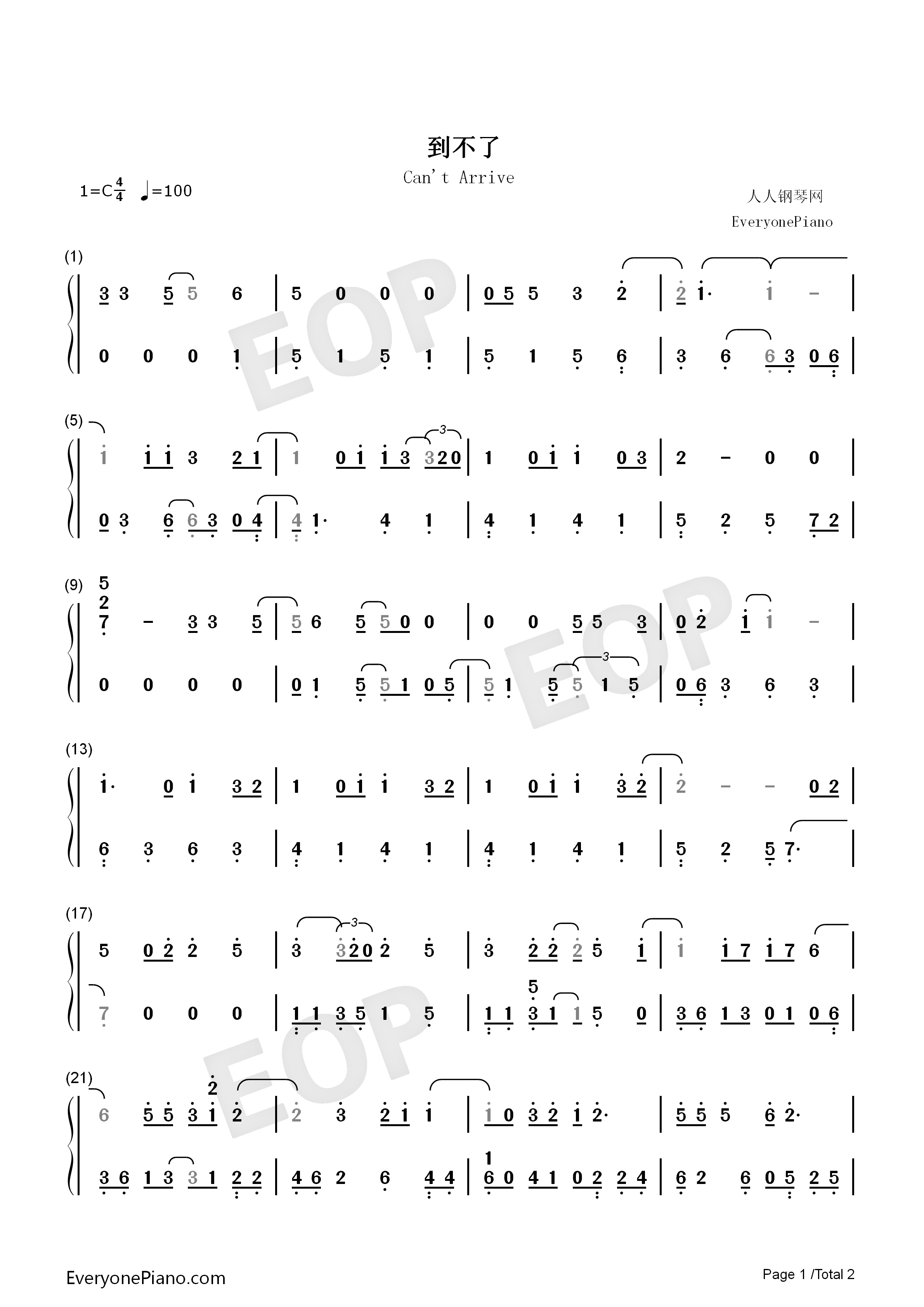 到不了-范玮琪-eop教学曲双手简谱预览1-钢琴谱文件(五线谱,双手简谱