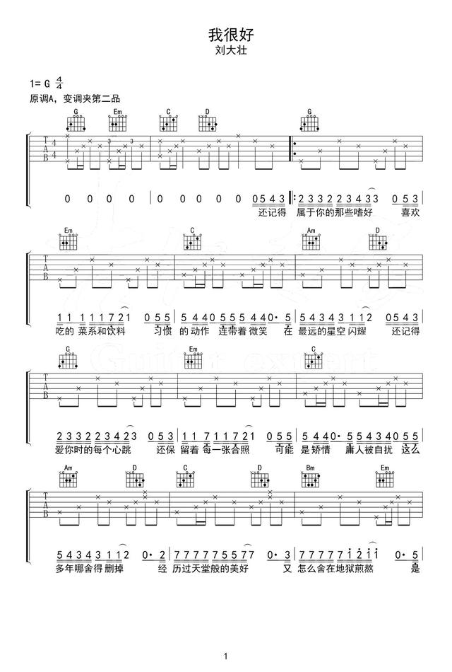刘大壮新歌我很好吉他谱原版完整版免费下载,吉他弹唱翻唱好歌