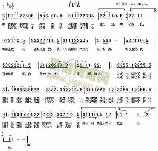 直觉_歌谱简谱_哆来咪123曲谱网