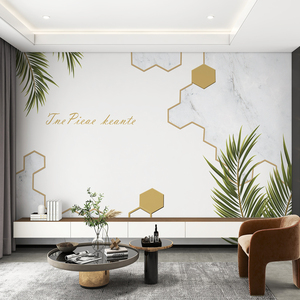 8d北欧电视背景墙壁纸现代简约银杏叶卧室客厅壁画大气影视墙壁布