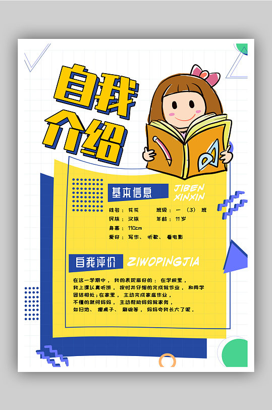 卡通风小学生自我介绍海报设计图片下载_psd格式素材_熊猫办公