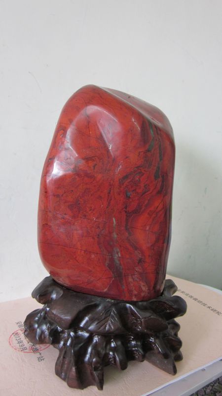 如日中天,红碧玉:23x26x12(cm),重9公斤,产地:四川长江,价:1.
