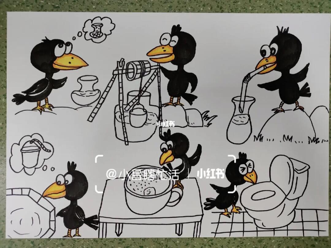 让您的孩子从小善于创造乌鸦喝水故事手绘画乌鸦喝水故事简笔画图片