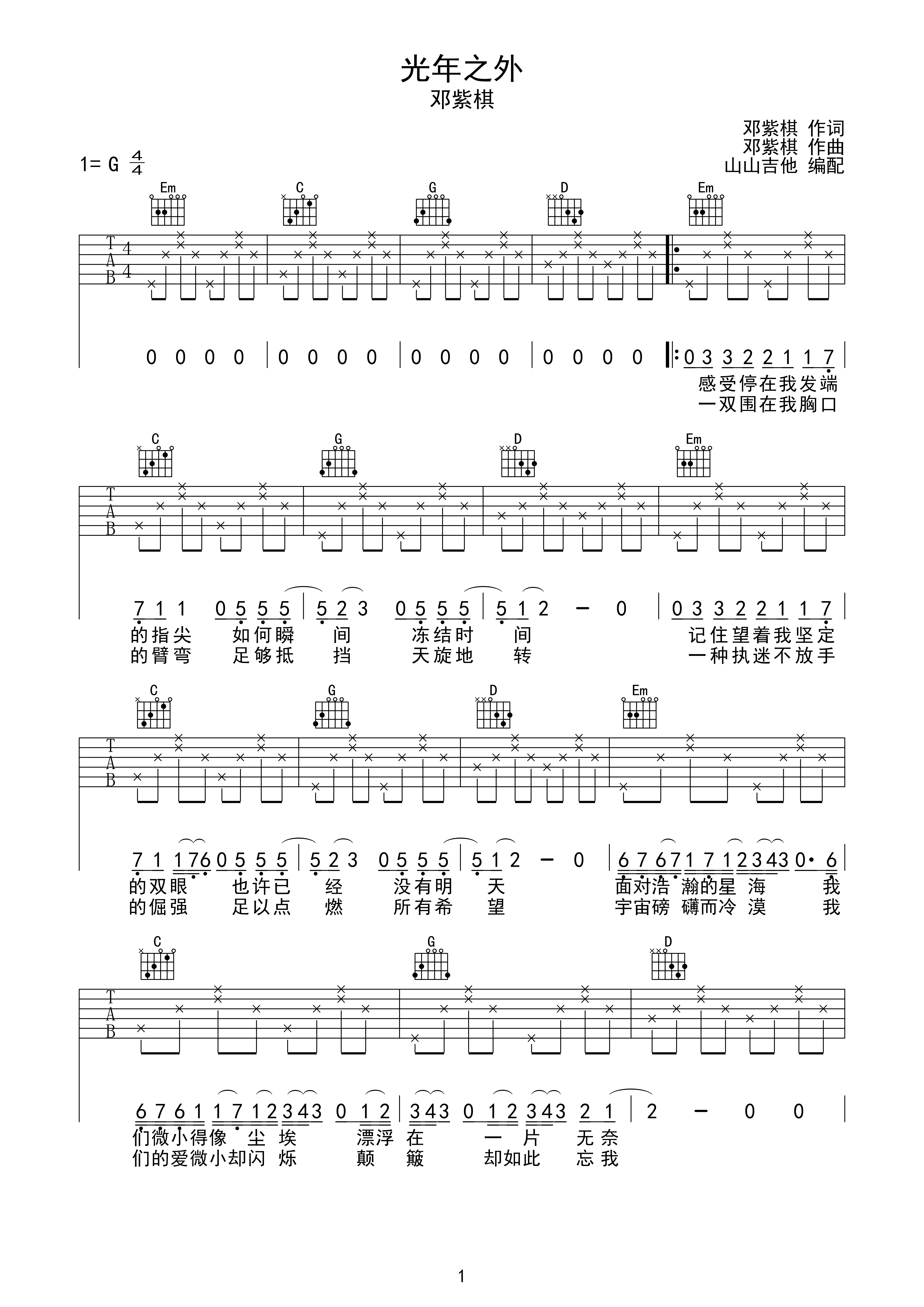 光年之外简谱第1页