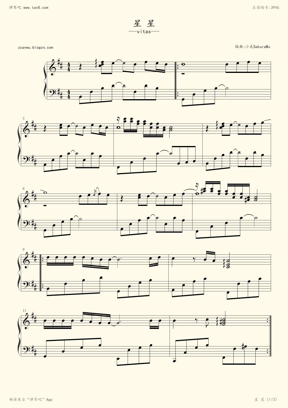 钢琴谱 - 星星>> vitas