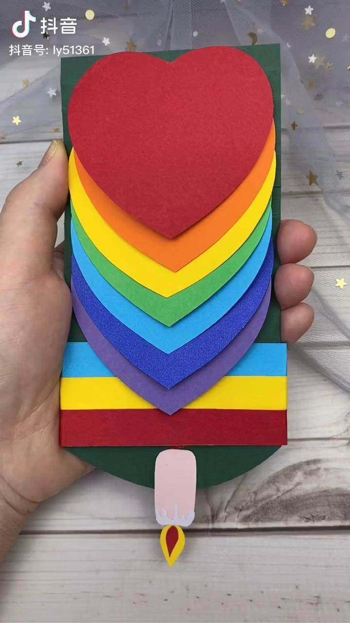 自制超火的彩虹爱心贺卡可以抽拉的教师节贺卡满满的心意送给老师