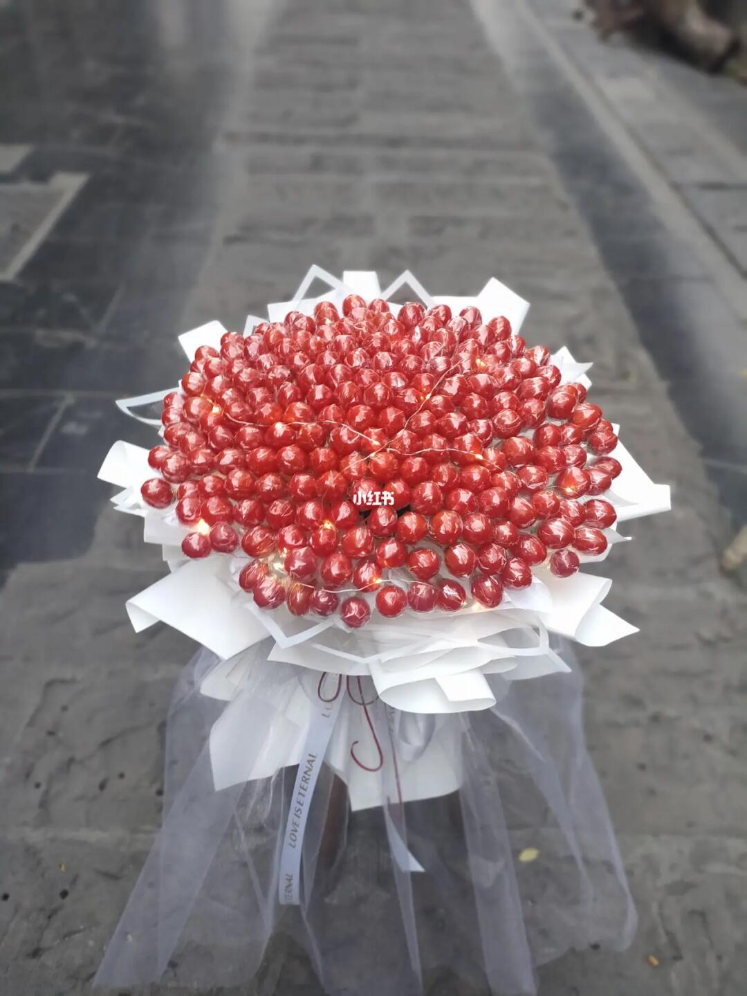 石榴,葡萄,火龙果,草莓,还有小西红柿等,拼成的一束束"爱的花束",浓郁