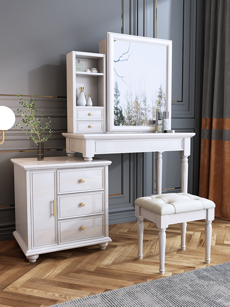 欧式梳妆台大小户型卧室实木化妆台现代简约家具迷你经济型组装桌_7折