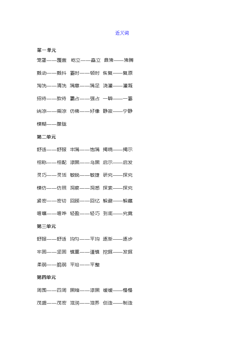 近义词反义词含答案