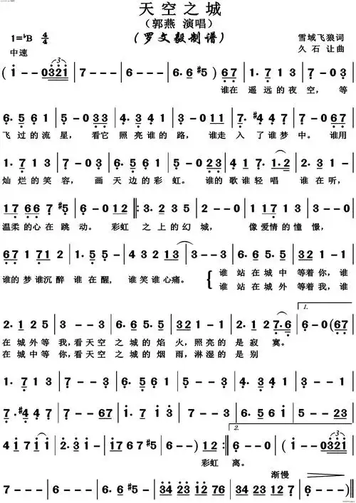 天空之城_歌谱简谱_哆来咪123曲谱网
