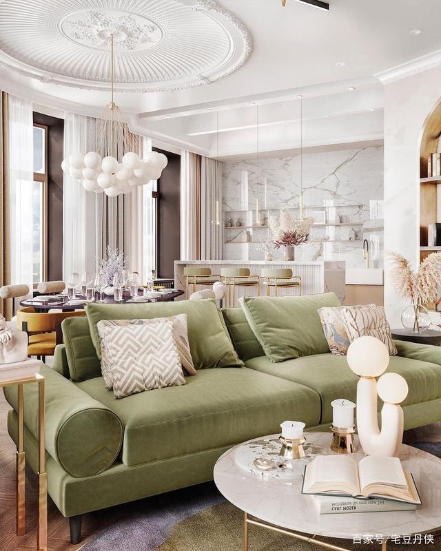 奶油色×牛油果绿,法式轻奢风小户型装修设计