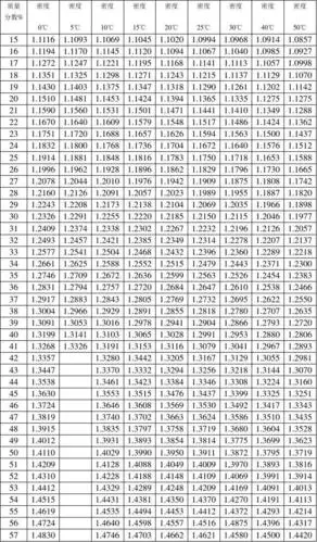 硫酸浓度与密度对比表