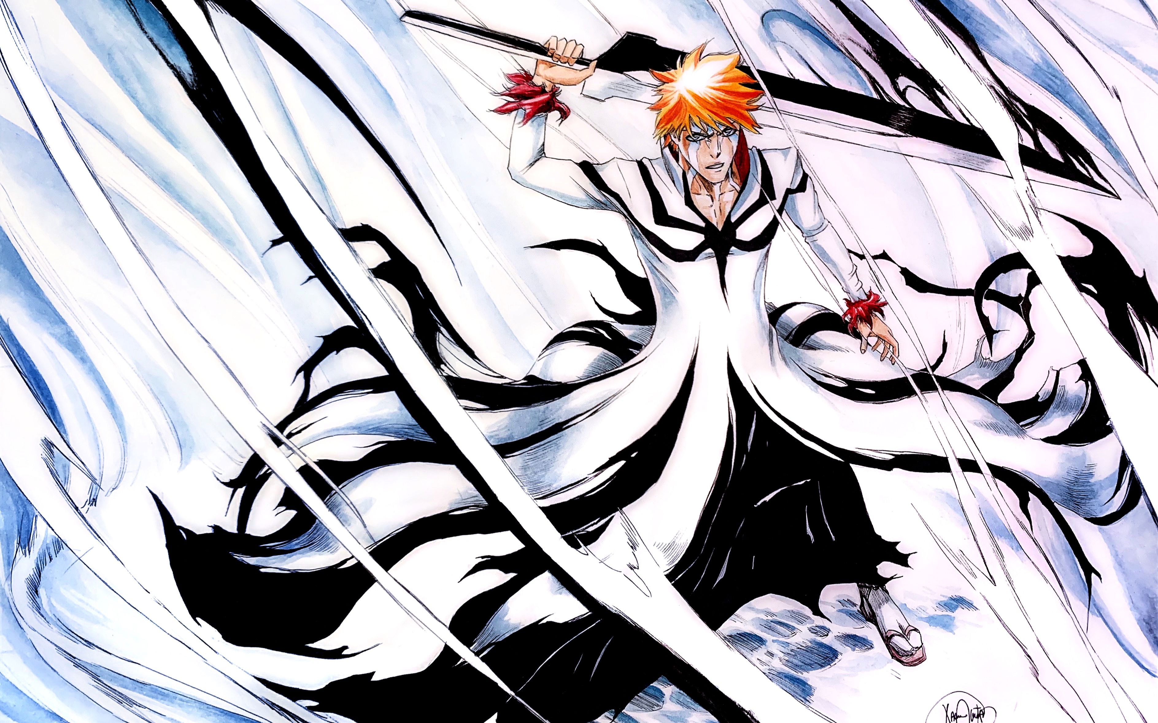 求一张是死神黑崎一护 黑色背影拿着刀 白色的背景的图片啊.