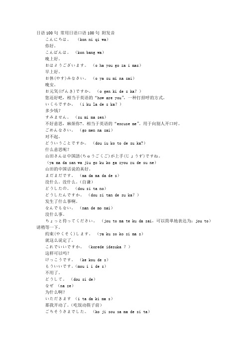 日语100句常用日语口语100句附发音こんにちは.(kn ni qi wa)你好.