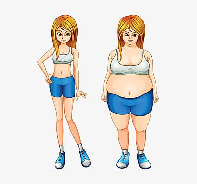对比免抠元素|彩色简笔胖瘦对比搞笑食物男