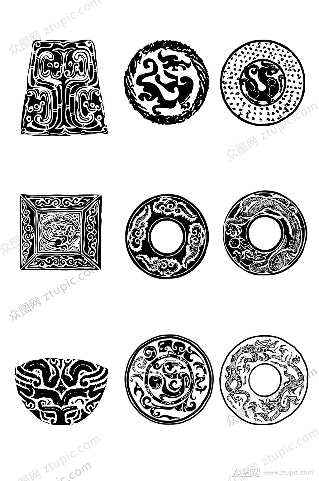50款中国风黑色民族风圆形复古花纹图腾图案png装饰素材