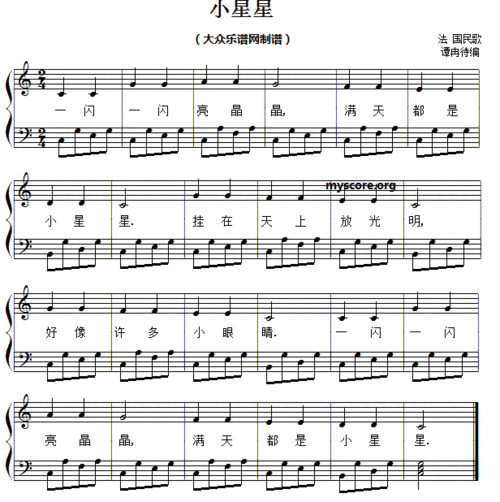 小星星 儿童歌曲弹唱伴奏 钢琴谱 简谱