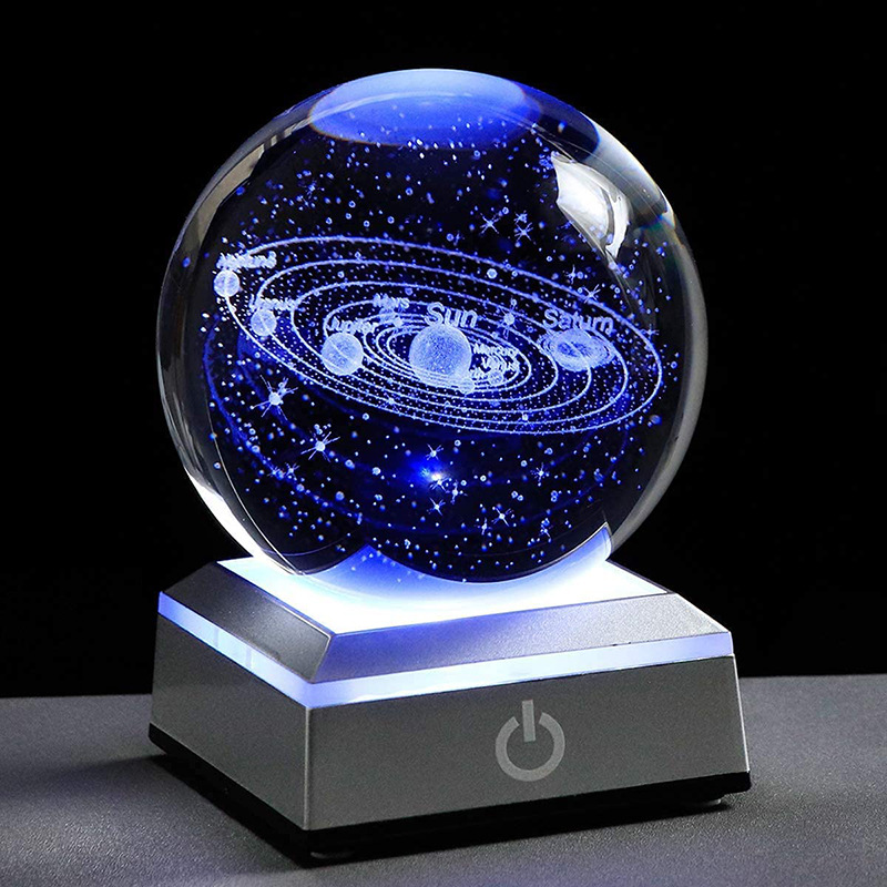 饰玻璃工艺品毕业礼品创意ins发光水晶球摆件太阳银河系小夜灯装