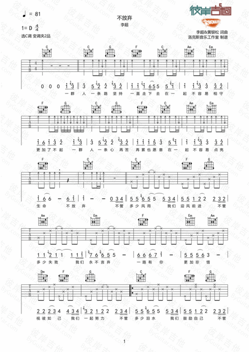 不放弃吉他谱_李超_升c弹唱 - 吉他世界