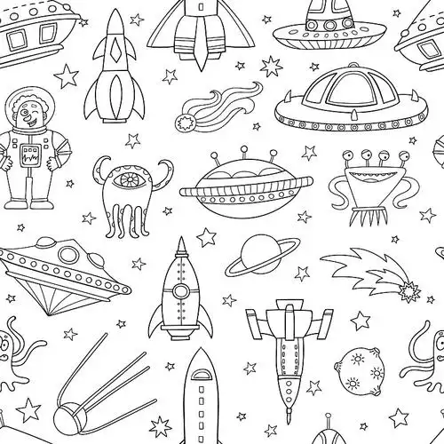 无缝模式的空间物体飞碟火箭图片素材