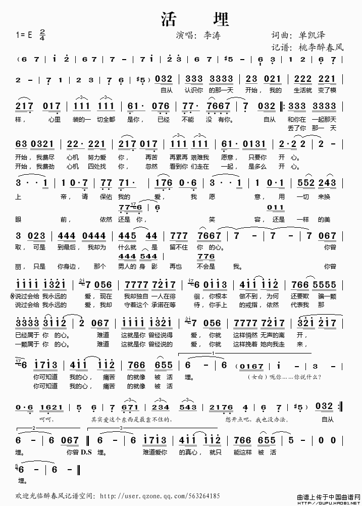活埋 李涛 李涛 歌谱 简谱
