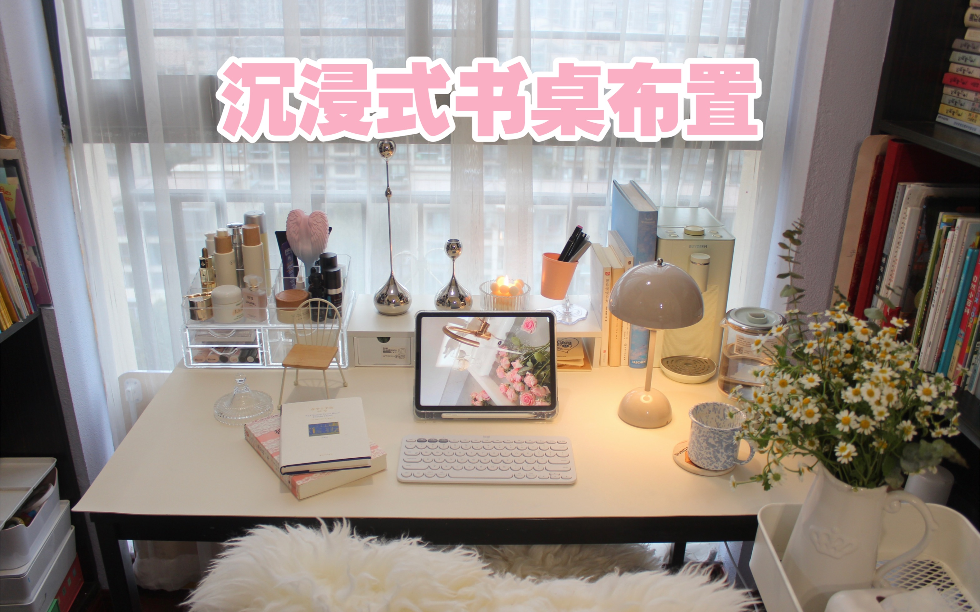 120s沉浸式书桌布置纯白ins风桌面收纳