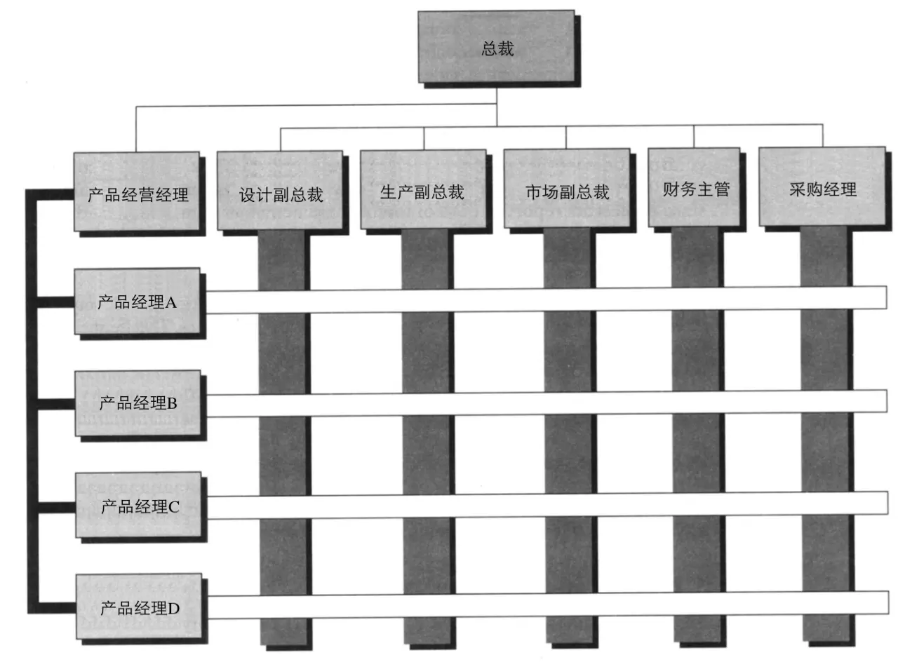 图2-16 矩阵制组织结构示例图【案例分析2-5】在某小企业的一次中高层
