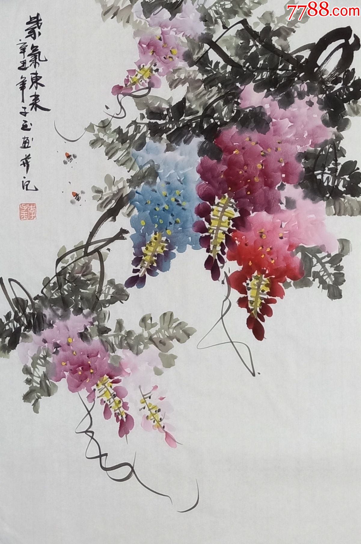 【保真】知名画家李子玉花鸟小品:紫气东来