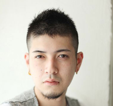 将发行推成小平头的造型,再用定型胶转出一根一根的效果,再带点碎发的