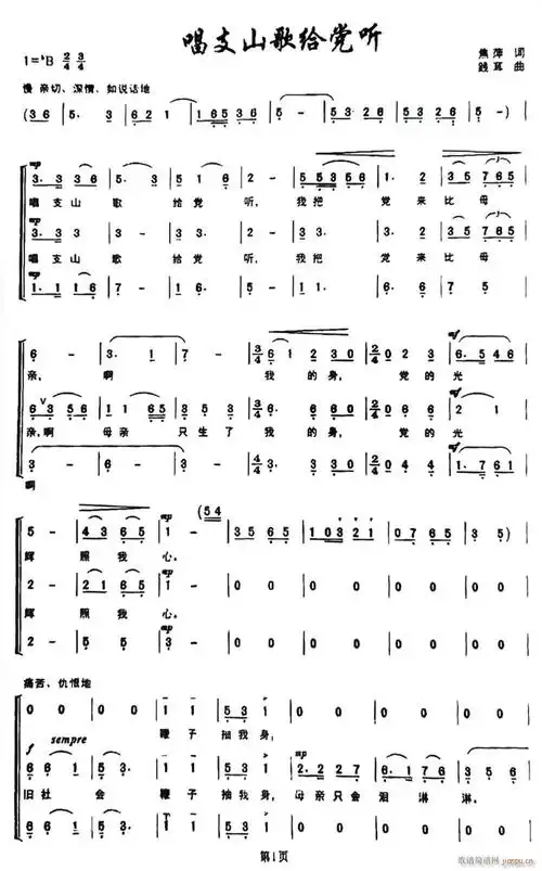 唱支山歌给党听(合唱谱)