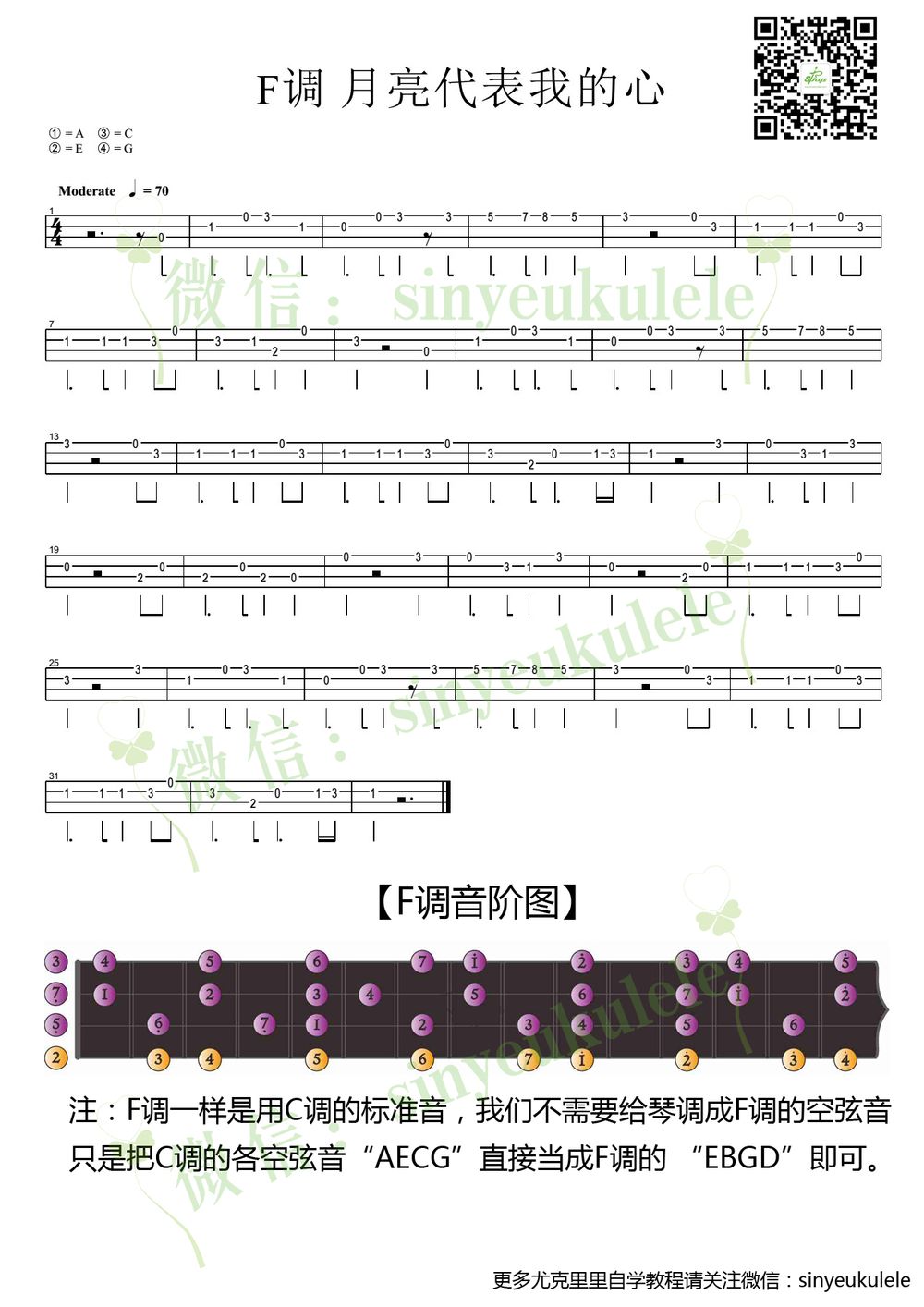 青峰小情歌尤克里里新手单音指弹曲谱