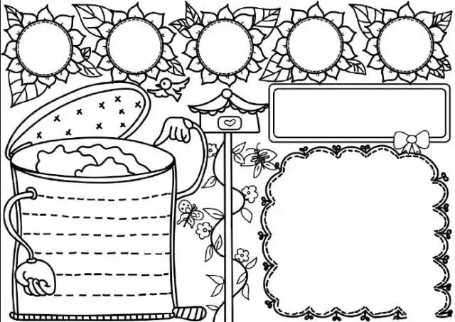 通用手抄报模板(黑白可打印)描边涂色