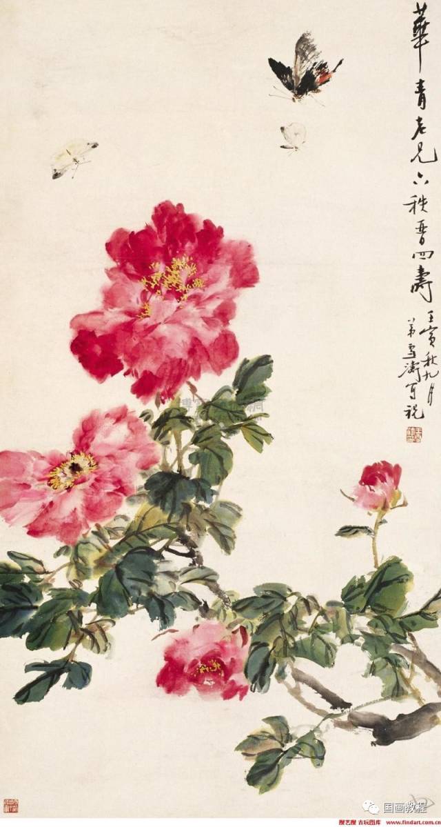 名家写意牡丹新构图 国画牡丹构图,画法及调色教程