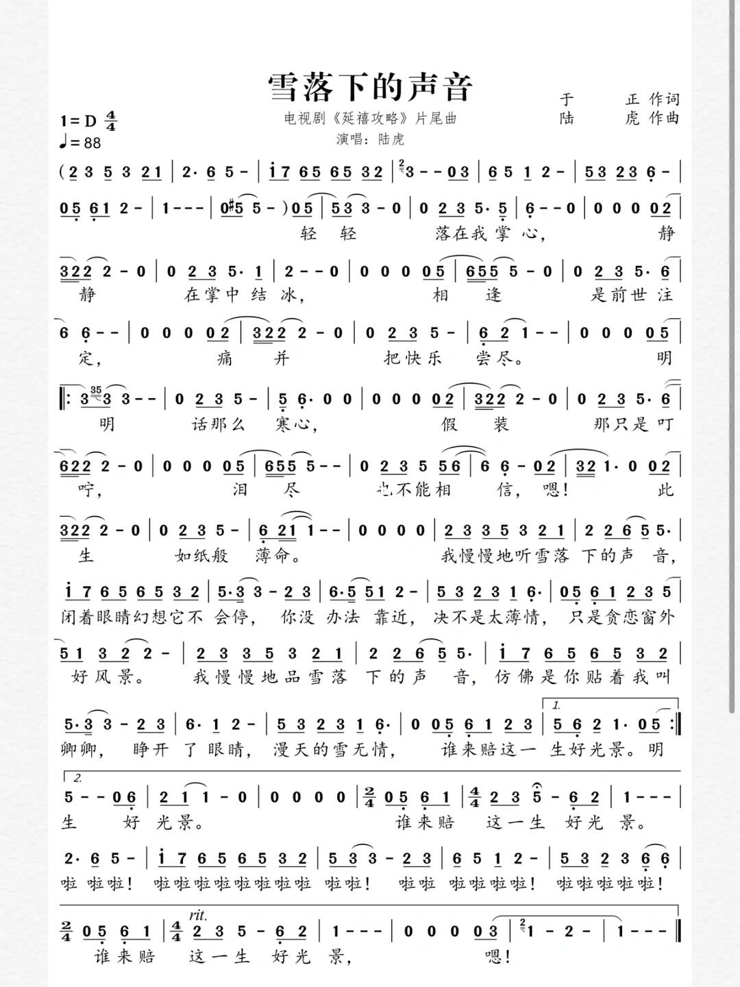雪花落下简谱