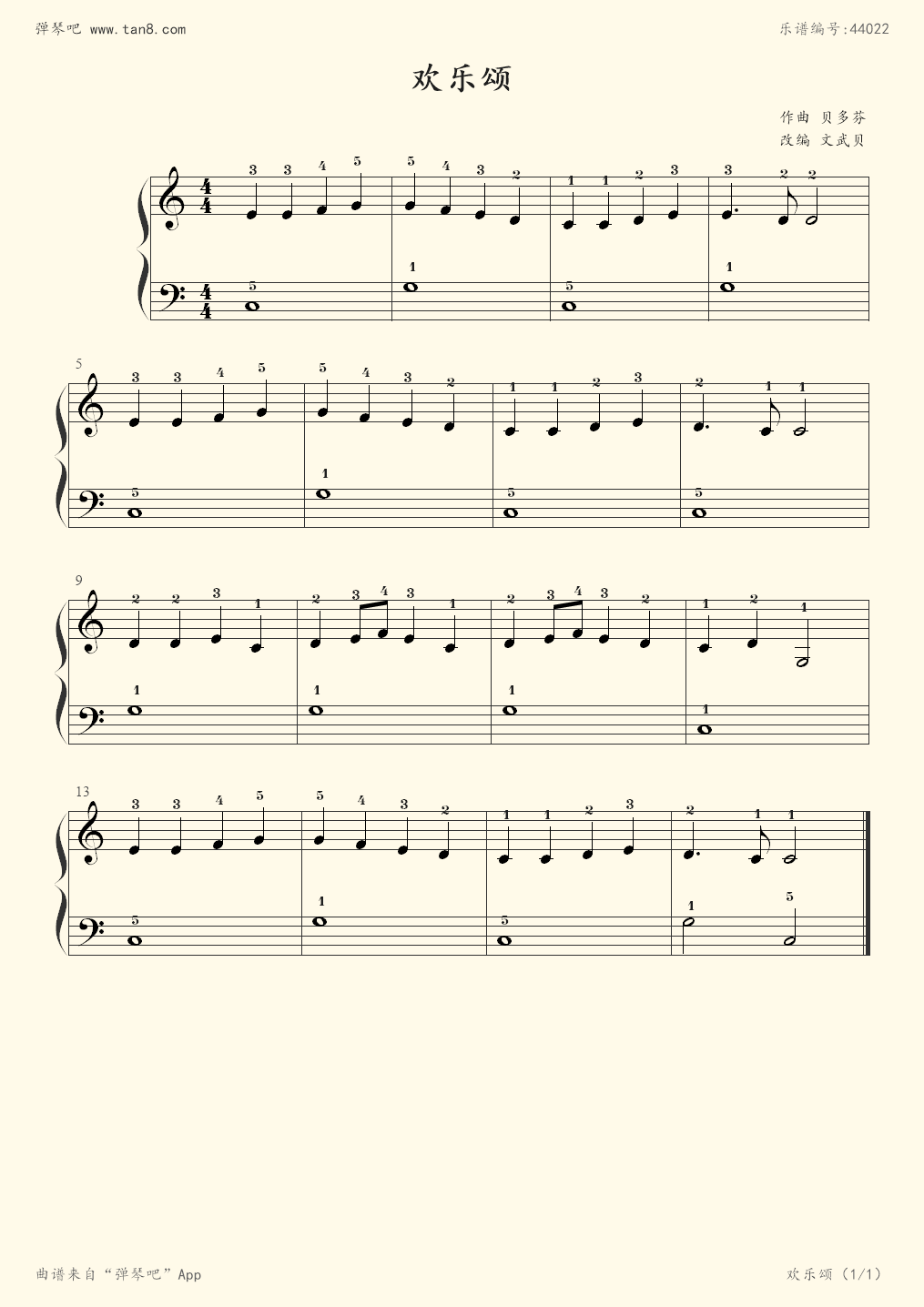 钢琴谱:欢乐颂 简化版 (适合初学者使用)