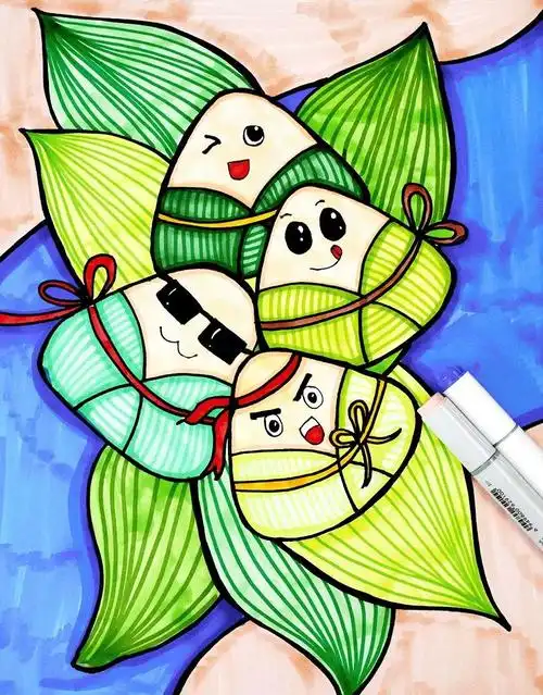 粽子儿童画马克笔画