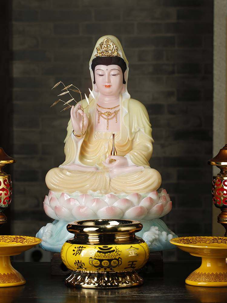 南海观音佛像家里供奉家用玉观音神像观世音菩萨像保平安陶瓷摆件16吋
