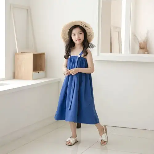 大童裙子女童7-8岁女夏2018新款韩版儿童吊带抹胸长裙中童连衣裙
