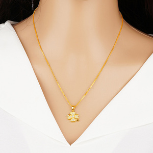 周大福星24k越南沙金999黄金项链女镶钻四叶草不褪色吊坠结婚饰品