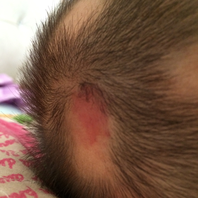 我的宝宝后脑勺有像胎记一样的红色斑迹,有人说是血管瘤?