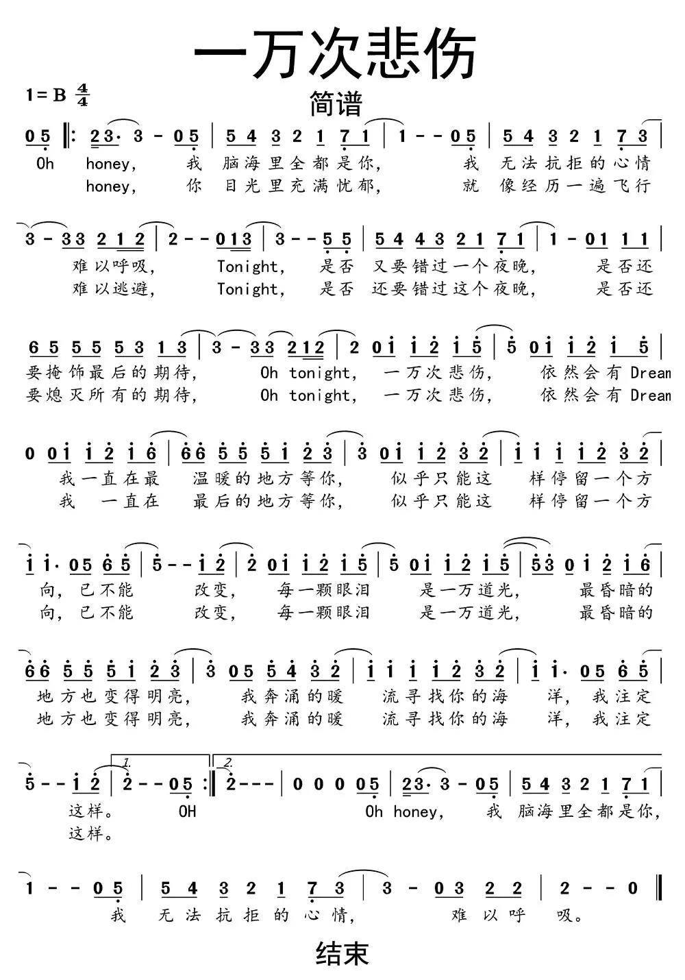 一万次悲伤(黑皮吉他屋编配版) 歌谱简谱网