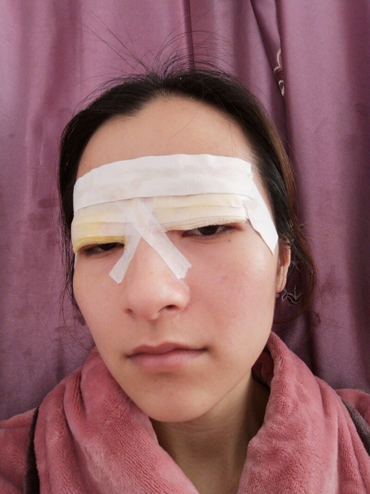 术后第2天:这是我术后第2天的样子,还蒙着纱布呢,好难受啊睁不开眼