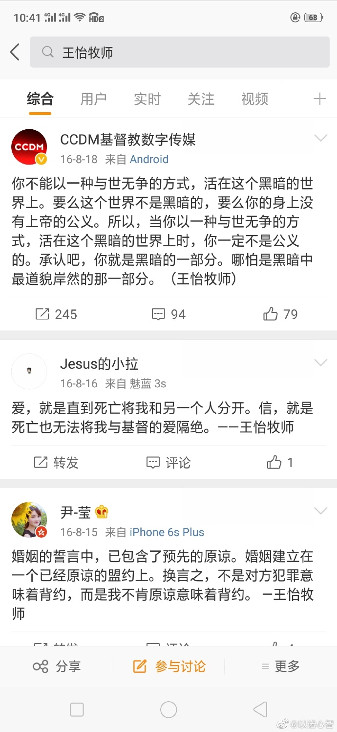刚刚搜索了一下王怡牧师,很多讲道的视频文. 来自爱所生一 - 微博