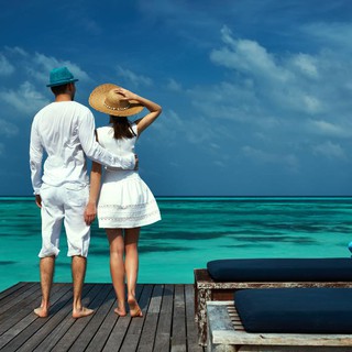 一对看海的情侣