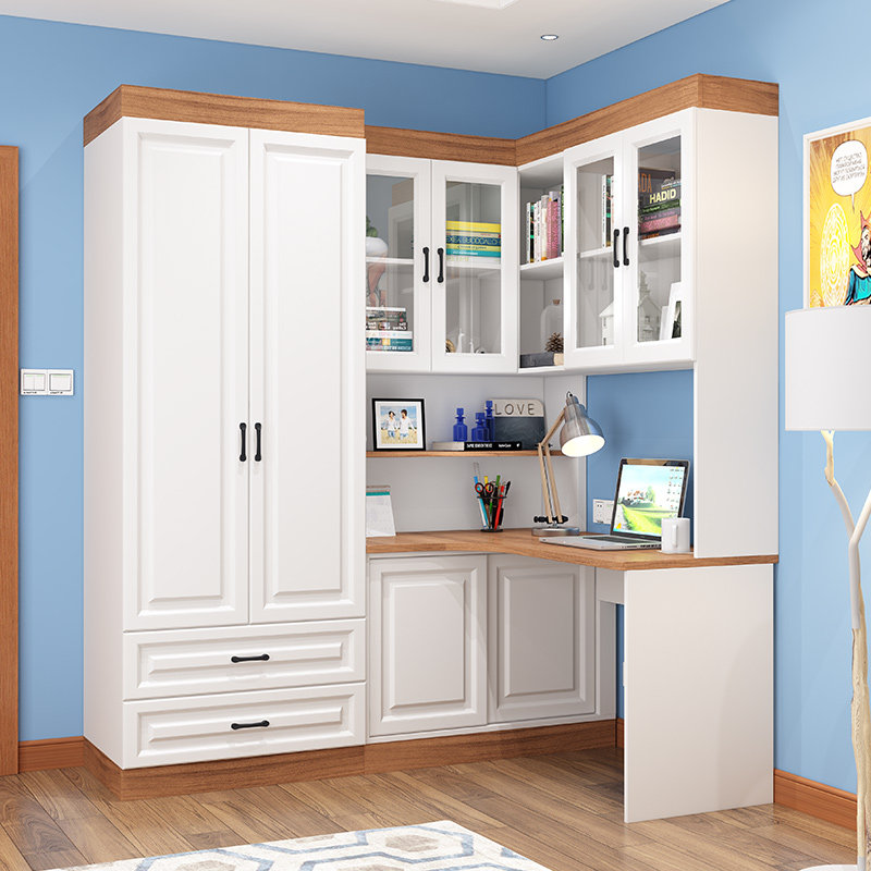 实木书柜带书桌书架闪电客衣柜一体电脑写字台转角加组合柜子学习桌