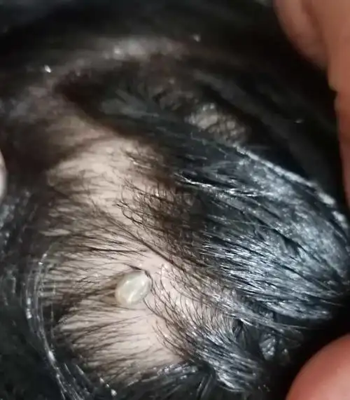 罗田山林里游玩,晚上洗澡时,妈妈黄女士发现她的后腰上冒出一个小黑点