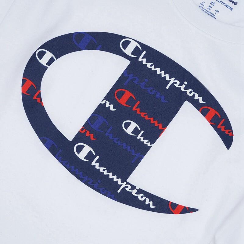 champion/冠军男士夏季胸前大clogo配底色印花圆领短袖t恤