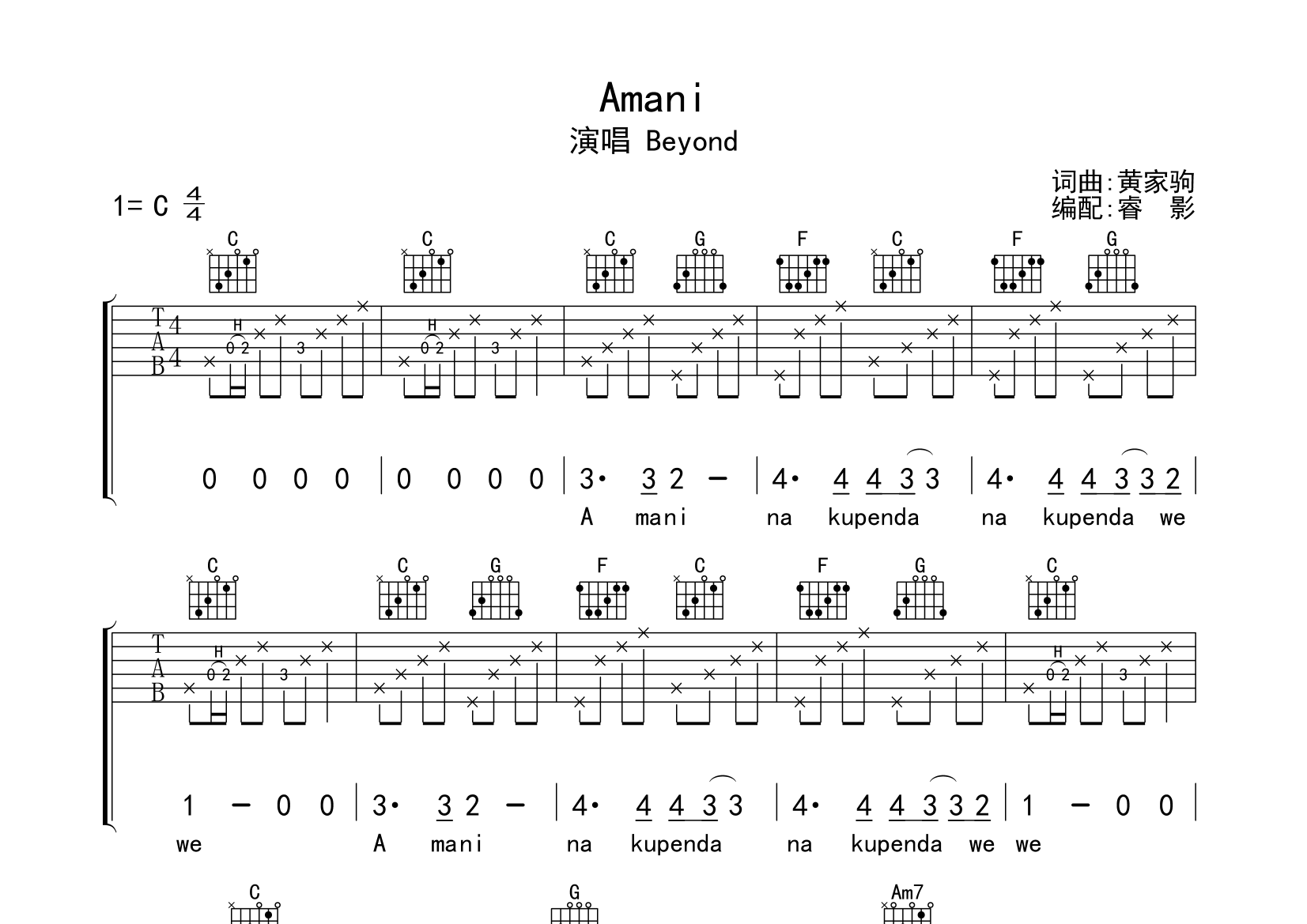 amani吉他谱(图片谱)_beyond - 吉他社