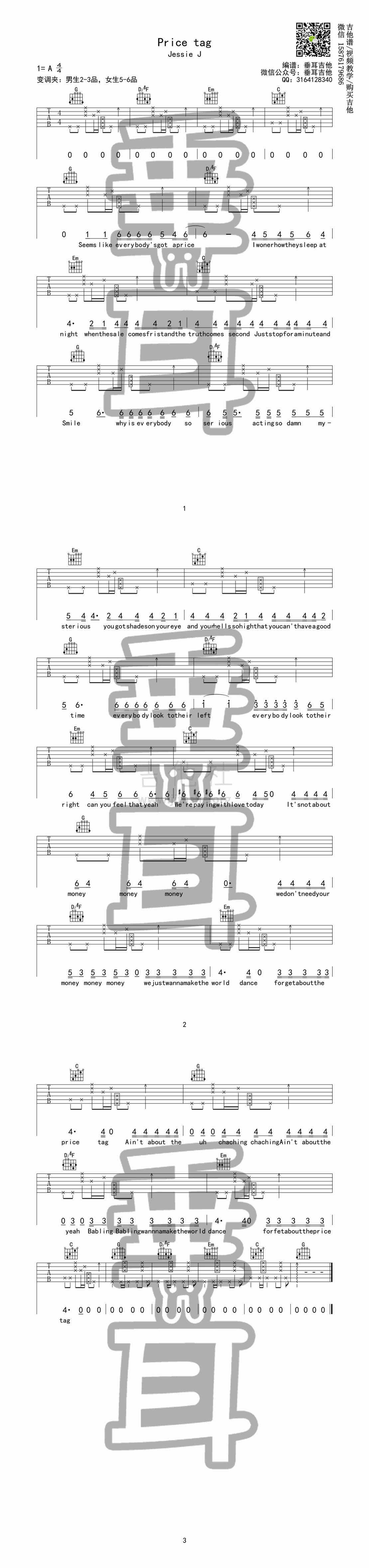price tag吉他谱(图片谱,弹唱,垂耳吉他)_jessie j(jessie j cornish)