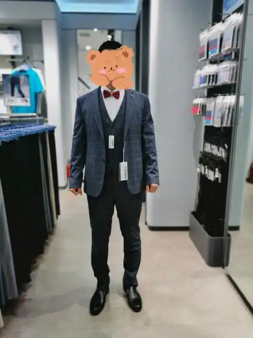 hla海澜之家礼服套装男2021秋季新品精致胸针格子套西htxad3d017a藏青
